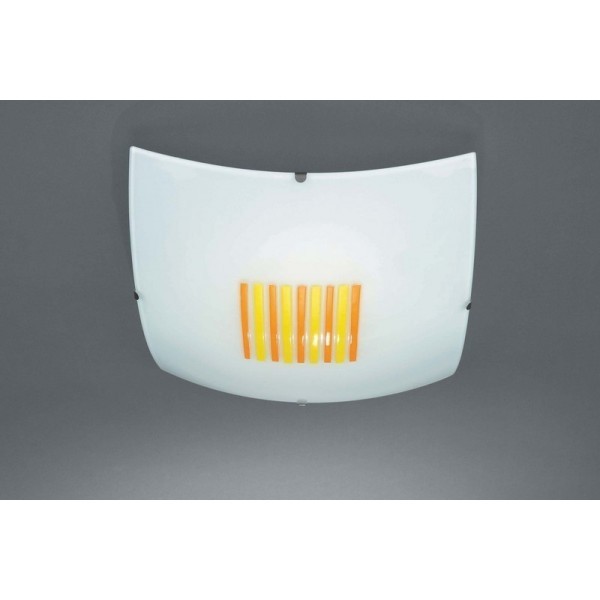 Χρώματος άσπρου με σχέδιο εννέα λεπτές γραμμές χρώματος κίτρινου και πορτοκαλί στην μέση του φωτιστικού ενώ στο πίσω μέρος βρίσκεται η βάση του η οποία είναι μεταλλική σε άσπρο χρώμα